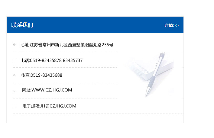 傳真:0519-83435688    郵編:213135    網址:WWW.czjhgj_com.scsubaru.com    電子郵箱:JH@czjhgj_com.scsubaru.com